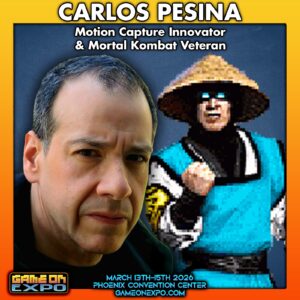 Daniel Pesina, martial arts master and gaming icon, is joining us at Game On Expo 2026. As one of the original faces of the Mortal Kombat franchise, Daniel portrayed Johnny Cage, Scorpion, Sub-Zero, Reptile, and Smoke in the early games that defined a generation. A national martial arts champion, Daniel didn’t just perform the moves. He helped design fight choreography, character concepts, and combat mechanics that shaped Mortal Kombat’s legacy and changed fighting games forever. He is the only national martial arts champion to design and choreograph fights for a video game before 1992, blending authentic martial arts with groundbreaking gameplay. Beyond gaming, fans may also recognize his martial arts work in Teenage Mutant Ninja Turtles II: The Secret of the Ooze and other film projects
